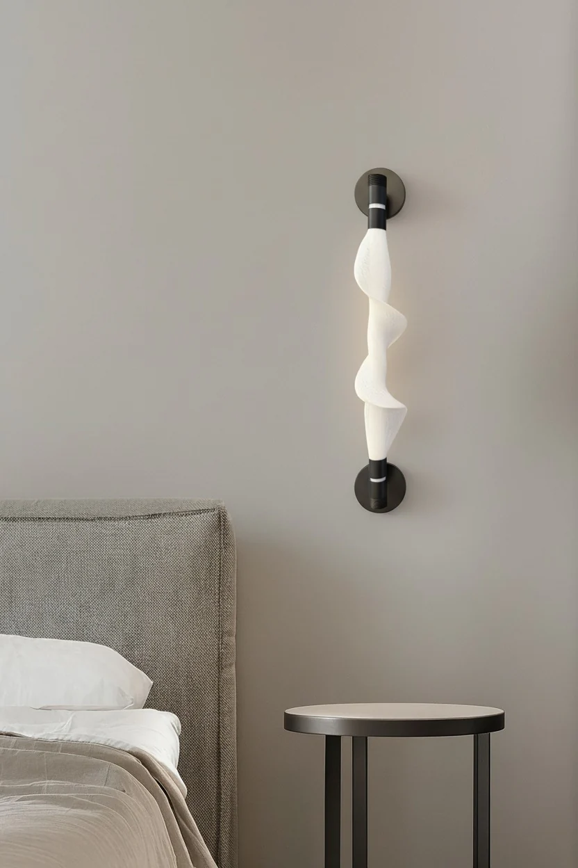 Imagine your space transformed. The Helice Wall Light isn’t just a fixture; it’s a statement of modern elegance. Its stunning helical design, crafted from delicate white plastic mesh, creates a captivating play of light and shadow, casting a soft, ambient glow. The sleek metallic base provides a striking contrast and a touch of luxury. This LED wall sconce serves as a contemporary art piece, bringing sculptural beauty and a warm, inviting atmosphere to your hallway, living room, or bedroom.