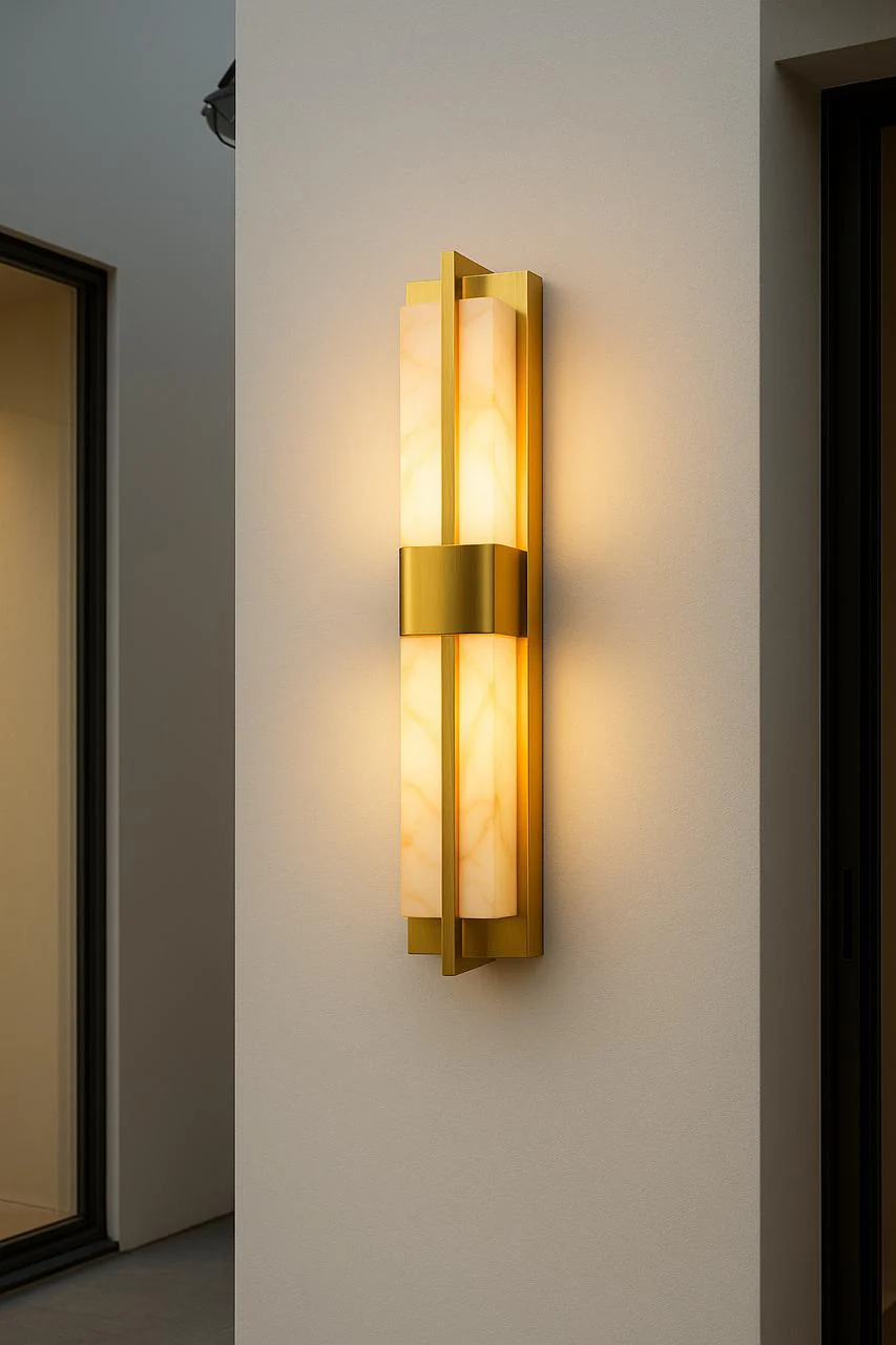 A sleek fusion of refined materials and sculptural design, the Valente Wall Light casts a warm, ambient glow that instantly elevates any space. With its modern vertical silhouette and clean architectural lines, this wall sconce brings understated elegance to hallways, living rooms, bedrooms, and entryways alike. The opal-like surface diffuses light beautifully, creating a soft, inviting atmosphere.