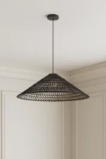 Imagine transforming your room with a ceiling lamp that feels like both art and light. Featuring a wide woven shade in sleek black, its sculptural silhouette casts soft, ambient lighting that enhances warmth and sophistication.