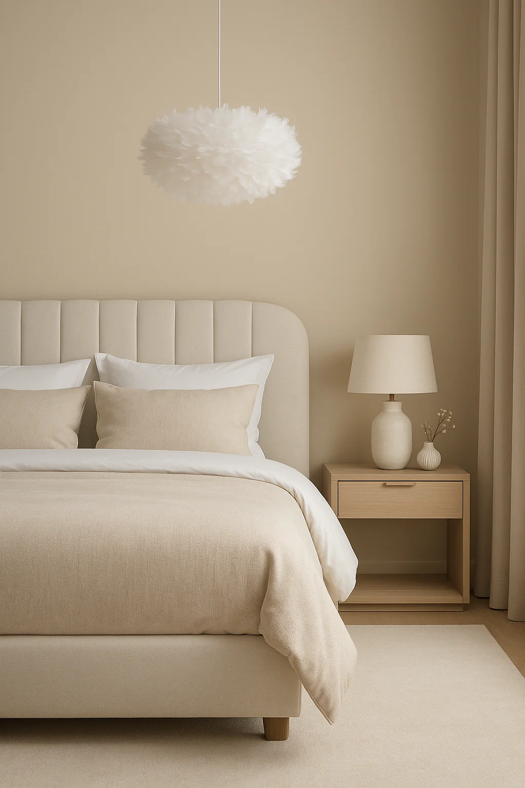 Beige Fabric Round Ceiling Lamp